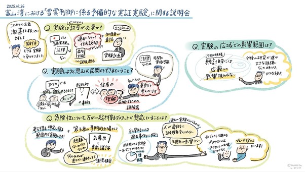 このような領域のことは、現状ではこのプロジェクトの範疇外になってしまうのかもしれませんが、あらゆる科学技術の社会実装において、このような面的・時間的・社会的な展開も見越した、より全体最適へと近づけていけるようなアプローチがさらに取り入れられると良いと感じました。その意味で、このプロジェクトは多様なステークホルダーとのコミュニケーションをもとに進めるオープンな手法がとられているので、とても良いと感じます。このような機会をいただきありがとうございました。 - お疲れ様でした。上手く進めないとリスクのある実証試験であること、そのために万全の対策・準備を進めていることが理解できました。